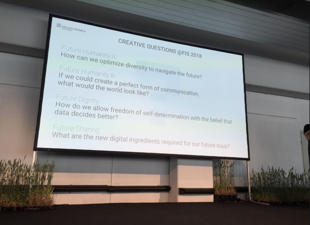A slide showing the creative question from the future innovators summit