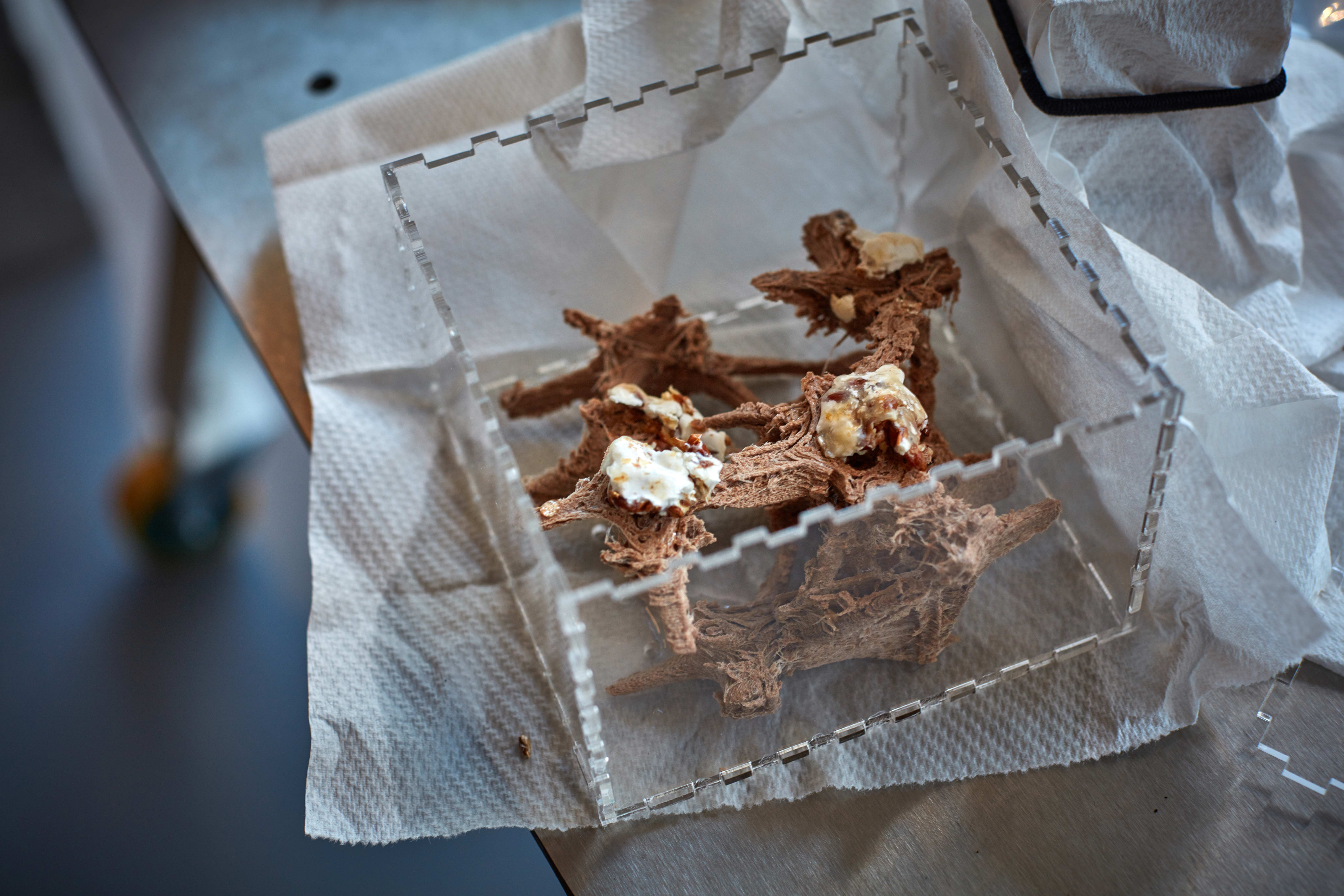 3D printed structure with mycelium growing in and on it