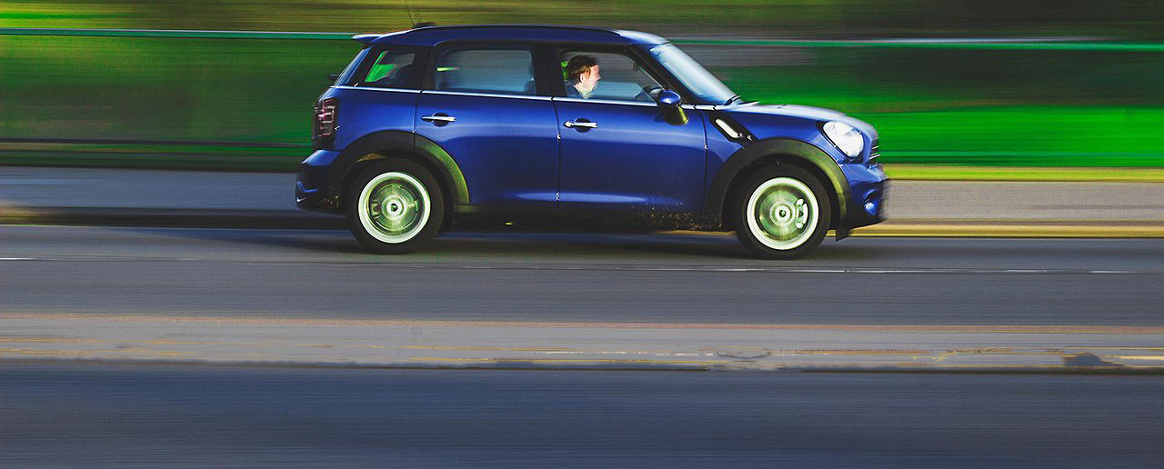 Car speeding down road
