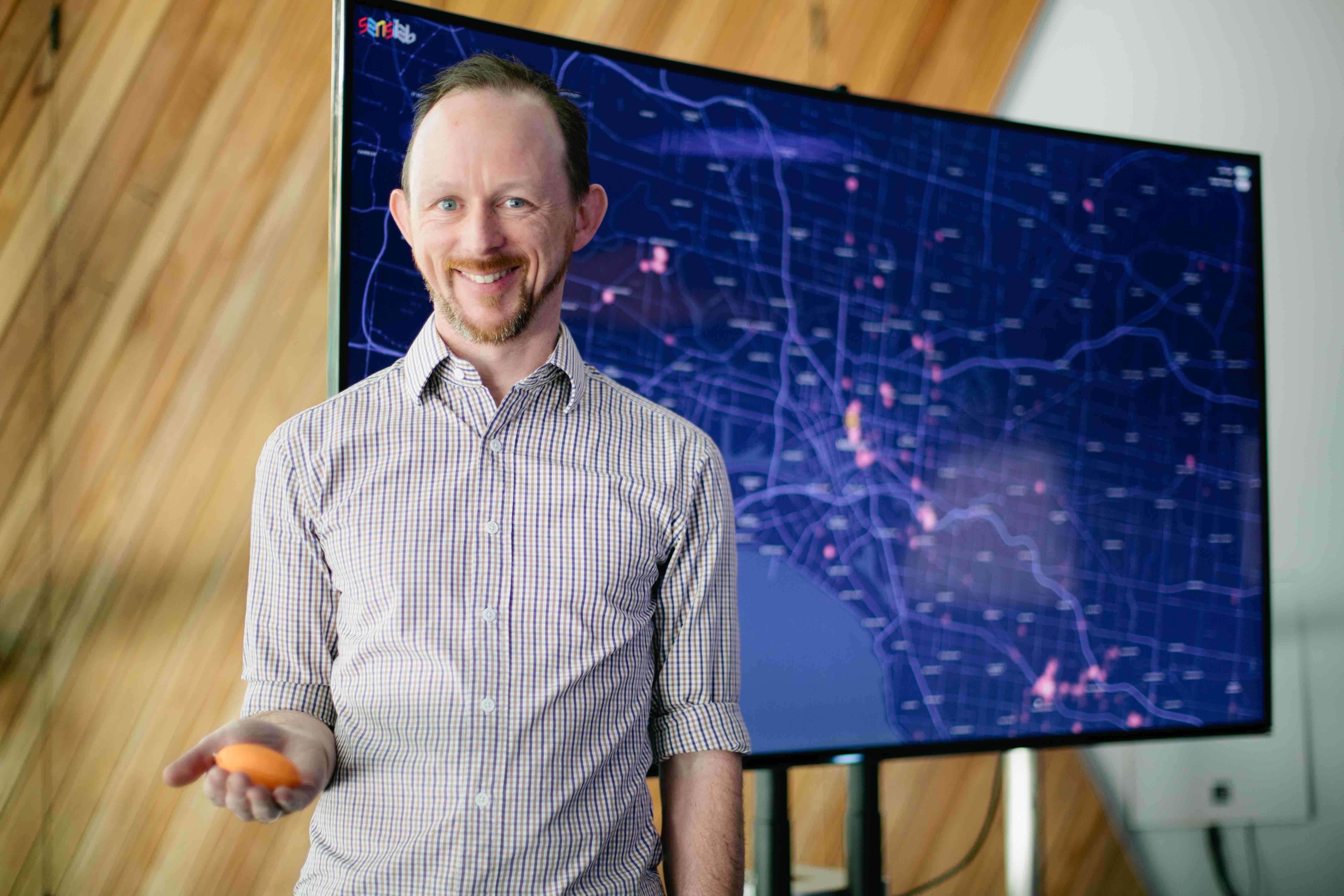 Matthew Butler holding a stress pendant